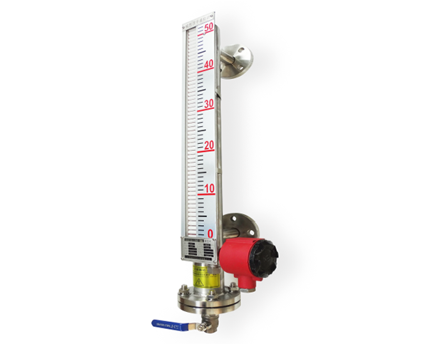 控制型是在磁翻板液位計的基礎(chǔ)上增加了磁控開關(guān),在監(jiān)測液位的同時磁控開關(guān)信號可用于對液位進(jìn)行控制或報警;遠(yuǎn)傳型是在磁翻板液位計的基礎(chǔ)上增加了 4~20mA 變送傳感器,在現(xiàn)場監(jiān)測液位的同時將液位的變化通過變送傳感器、線纜及儀表傳到控制室,實現(xiàn)遠(yuǎn)程監(jiān)測和控制。
