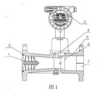 1、旋渦發(fā)生體 2、殼體 3、智能流量計(jì)積算儀 4、溫度傳感器 5、壓力傳感器 6、壓電晶體傳感器 7、消旋器