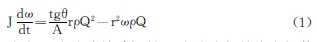 式中 ,J為葉片轉(zhuǎn)動(dòng)慣量θ為葉片與軸線之間的夾角r為渦輪葉片的平均半徑,A為管道流道面積,ρ為流體密度,ω為渦輪的旋轉(zhuǎn),角速度Q為通過管道的流量。