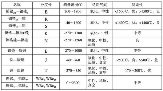 工業(yè)用熱電偶的測溫范圍見下表: