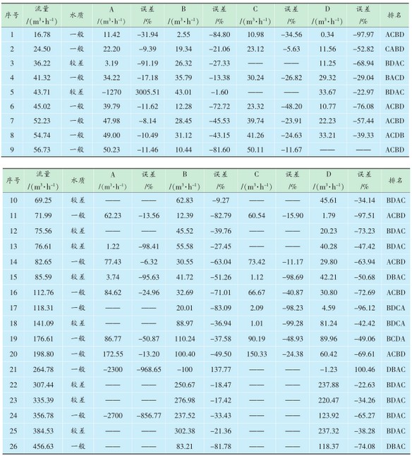 表2 一般水質時流量計誤差統(tǒng)計
