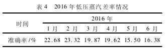 畢托巴蒸汽流量計(jì),經(jīng)過(guò)調(diào)試、組態(tài)等相關(guān)工作以后,至3月開(kāi)始,蒸汽系統(tǒng)低壓蒸汽外供量以該計(jì)量表(FT414)數(shù)據(jù)為準(zhǔn),表4為2016年1-6月份蒸汽準(zhǔn)確率情況。