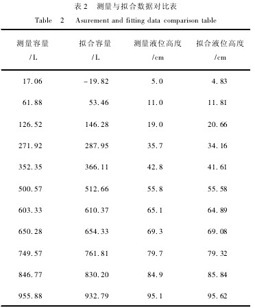 分析對比表2的數(shù)據(jù)可知:液位高度誤差在允許范圍之內(nèi),擬合容量的負(fù)數(shù)除了與傳感器的安裝位置及儲液罐的形狀有關(guān)以外,和換算容量的基點(diǎn)(零點(diǎn))也相關(guān)。因此,可以重新選一個(gè)容量和高度基點(diǎn)來解決。