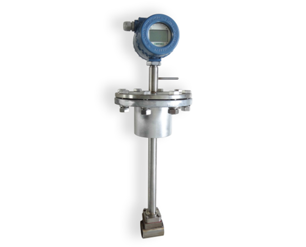 按國(guó)際標(biāo)準(zhǔn)化組織IS07145(在環(huán)形截面封閉管道中的流體流量測(cè)定—在截面一點(diǎn)的速度測(cè)量法),采用埋入壓電晶體的渦街測(cè)速探頭,插入大口徑工業(yè)管道內(nèi),將卡門旋渦頻率轉(zhuǎn)換為與流量成正比的電流或電壓脈沖信號(hào)或4~20mADC電流信號(hào)。