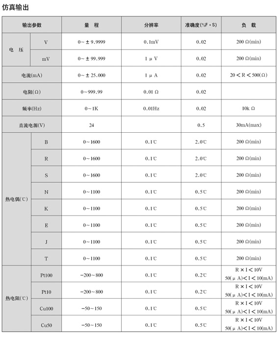 * 直接鍵入熱電偶(熱電阻)℃值,顯示并輸出對(duì)應(yīng)的mV(?Ω)值,無須再查分度表.